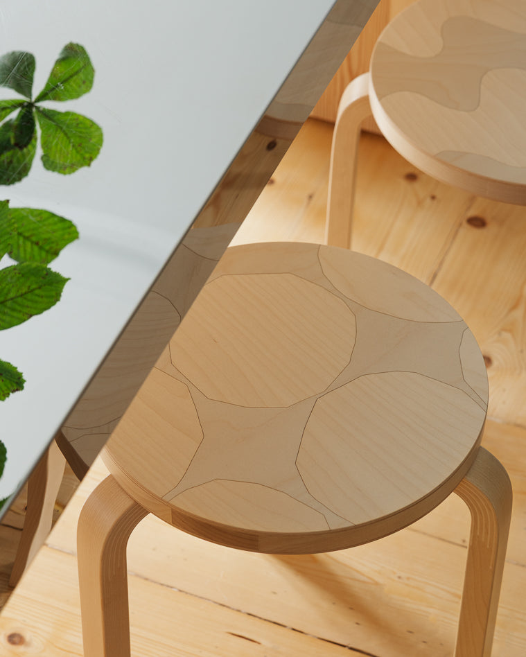 Som en del av 90-årsjubileet har Artek slått seg sammen med det finske designhuset Marimekko for å presentere en begrenset møbelkolleksjon. Denne samarbeidskolleksjonen forener Marimekkos trykkunst og Arteks teknologi for trebøying. Noen av Marimekkos mest ikoniske trykk av designer Maija Isola kombineres med renheten til Alvar Aaltos Stool 60, Table 90D og Bench 153B. Hvert mønster er påført ved hjelp av intarsia på bjørkefiner, hvor kontrasterende trestrukturer overfører Isolas livlige mønstre til en subtil, skimrende overflate. Kolleksjonen feirer det som forener to ikoniske finske merkevarer – dristige og distinkte identiteter formet av arkitektur, natur og menneskesentrert pragmatisme. Den gjenspeiler Artek og Marimekkos streben etter langvarig design, og produksjonsprosessen for intarsia minimerer treavfall. Alle produkter er laget av ansvarlig hentet finsk bjørketre på Arteks fabrikk i nærheten av Åbo i sørvestlige Finland.