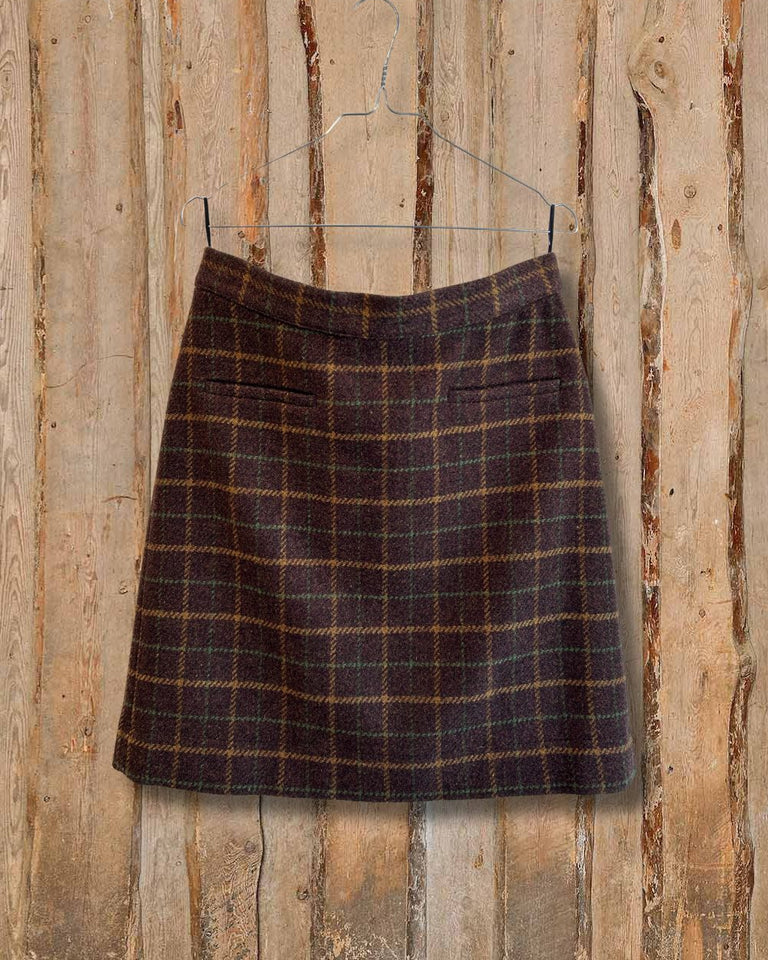 - Rutete skjørt i Shetlandsull, brunt.