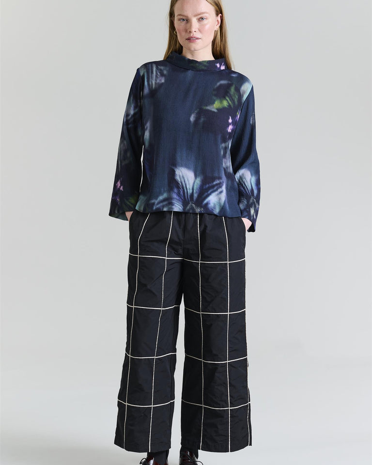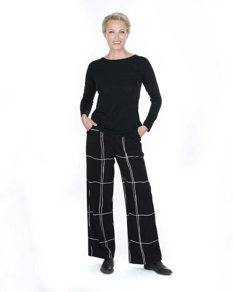 - Ritva Falla bukser PUISTO, svart med hvit mønster.