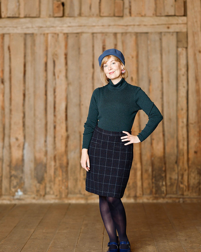 - Rutete skjørt i Shetlandsull, Blått.