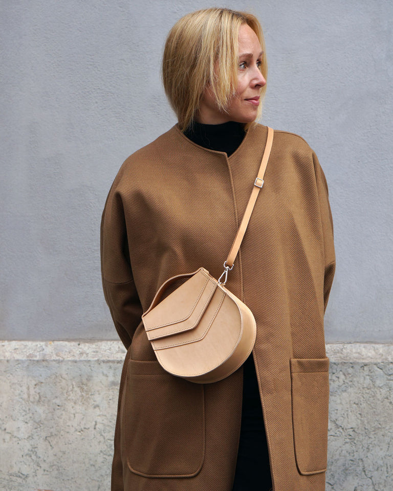 Ideen bak designet er å ta kvaliteter og materialitet fra arkitekturen, og omvandle det til designet på veskene. Slik lager de produkter som kan brukes og elskes hver dag.