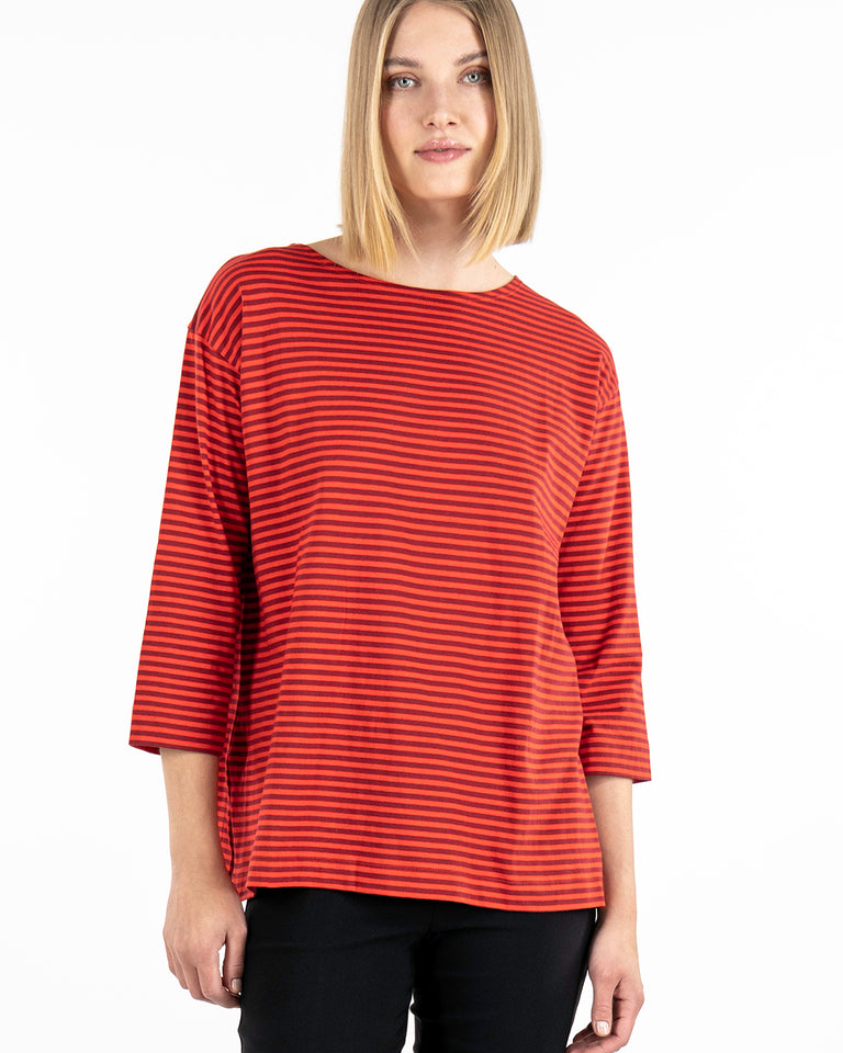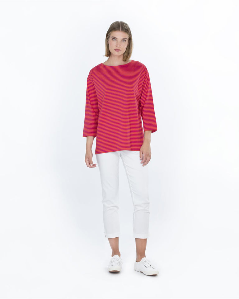 - Tasaraita Unisex Kioski T-skjorte, rød/ off white