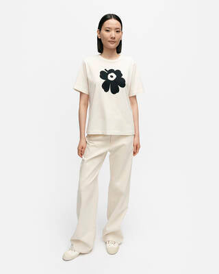 - Tasaraita Unikko Kioski T-skjorte, rød/ off white