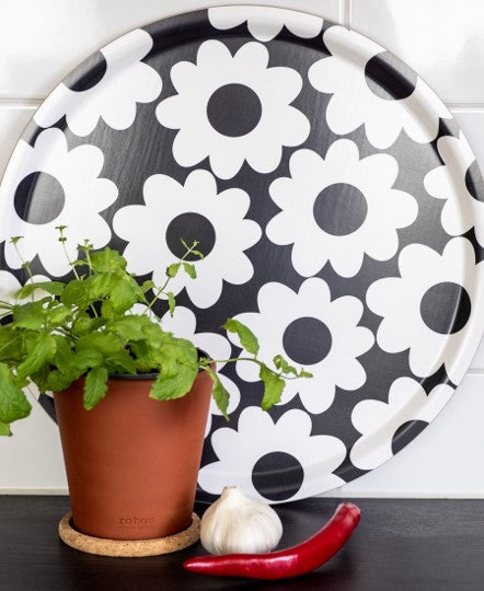 - Flora Rundt brett, ø 38cm, svart/ hvit.