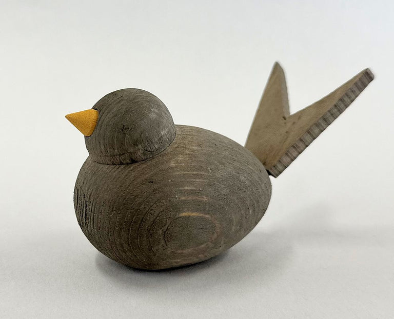 - Spegels, WOODEN BIRD 45MM, gråbrun.