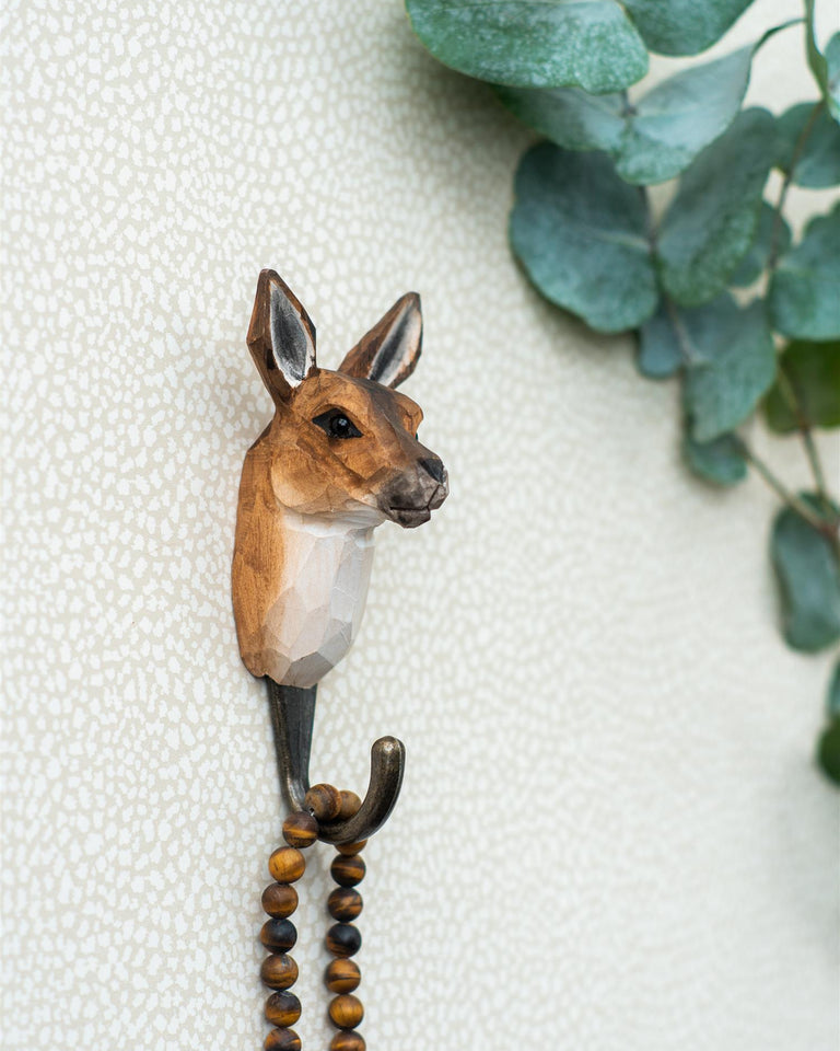 - Wildlife Garden Knagg, håndskåret i tre Kenguru.