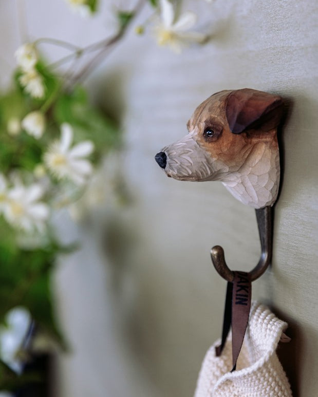 Wildlife Garden Knagg, håndskåret i tre Jack Russel Terrier
