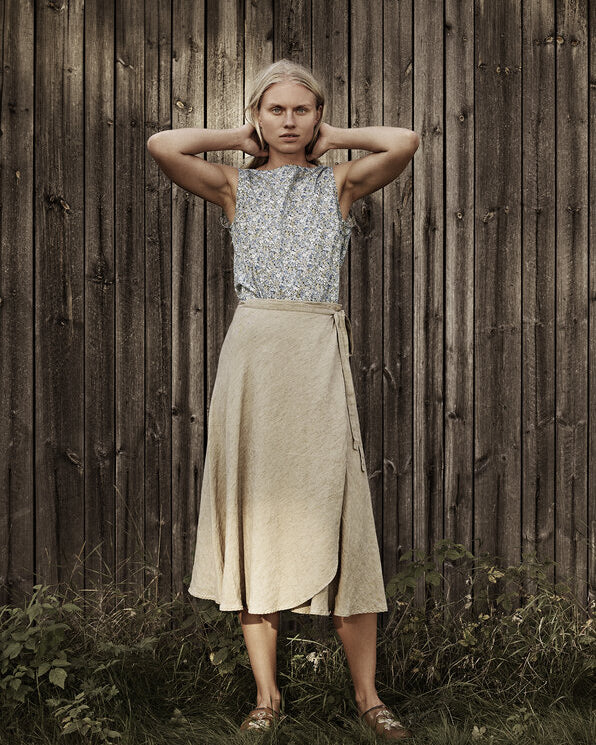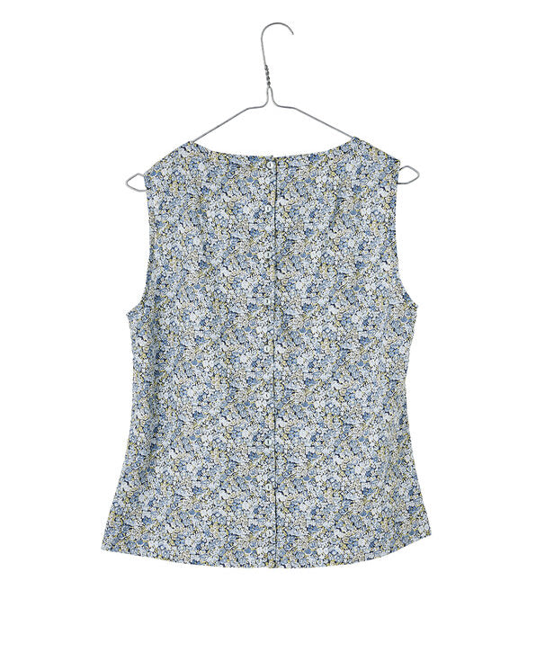 Klassiske overdel i autentisk Liberty-design trykt på økologisk bomull. Rund hals og fargematchede knapper helt ned i ryggen. Normal passform.