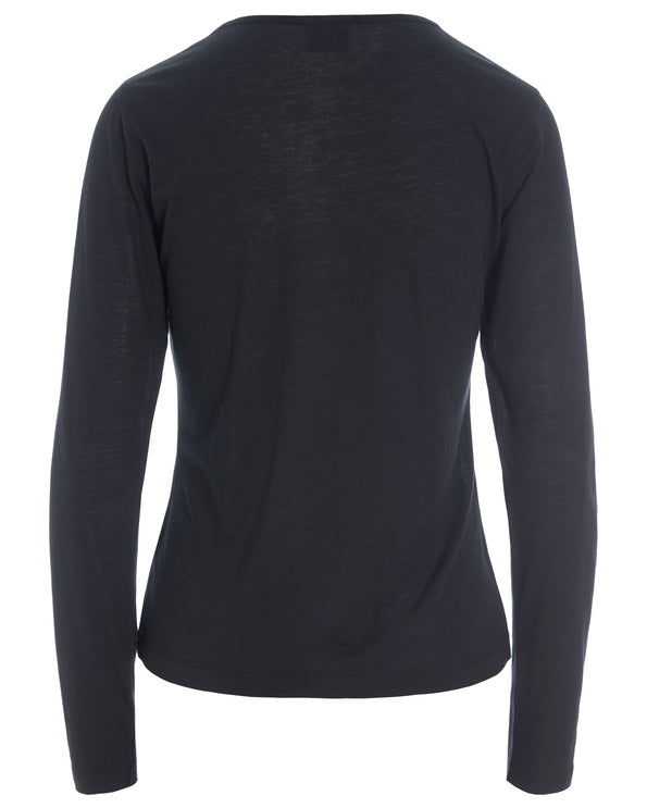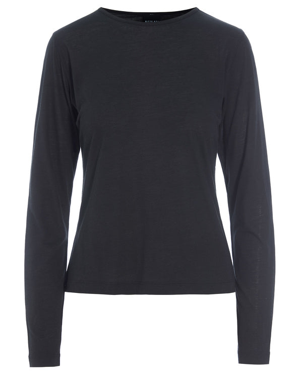 Bluse i tynn, myk jersey-kvalitet av ren økologisk bomull. Blusen har et feminint uttrykk, og takket være det enkle, moderat tettsittende snittet sitter den veldig pent på kroppen. Et godt basiselement i garderoben.