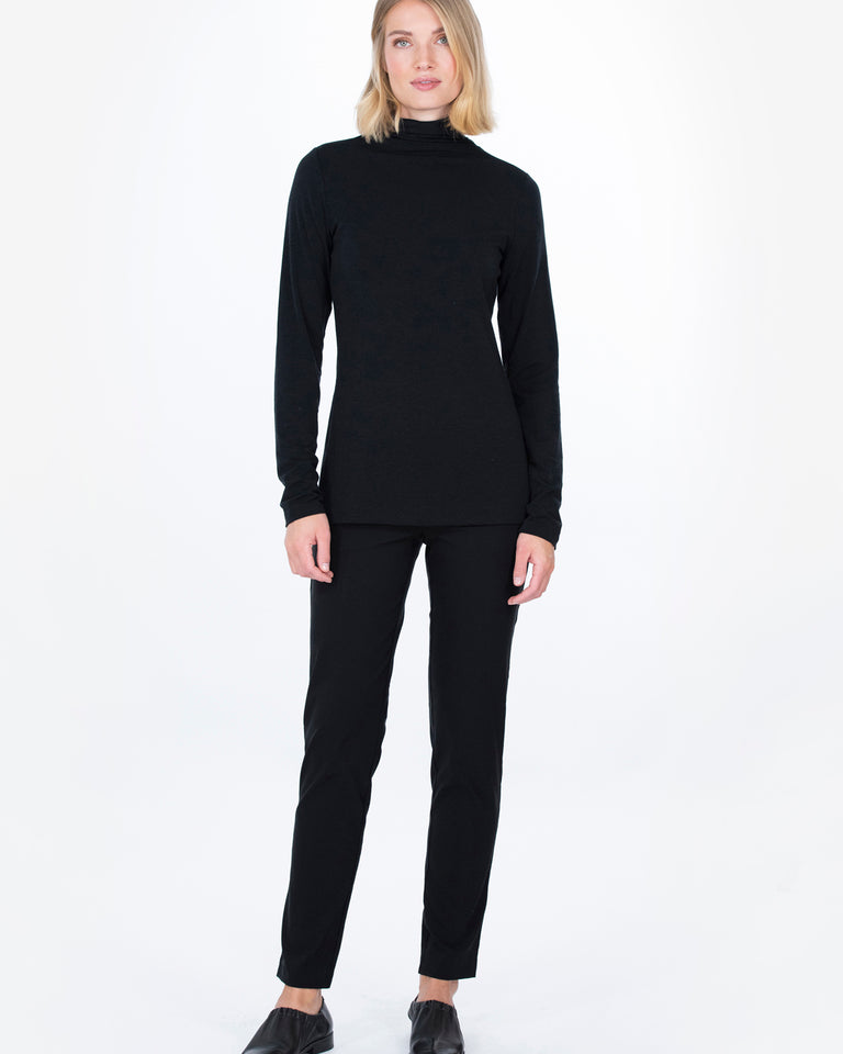 LIISA buksen har en fasong som passer for alle, bare trekk på, ingen glidelås. Bredt dobbelt midjepanel gir ekstra støtte. Innersømlengden på størrelse 36 er 77 cm.