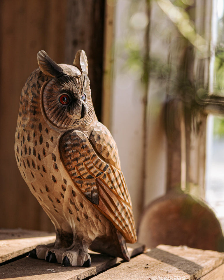 Wildlife Garden DecoBird, figur håndsmidd i tre Ugle.