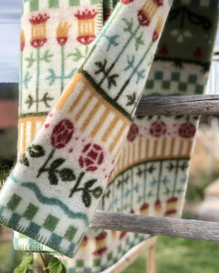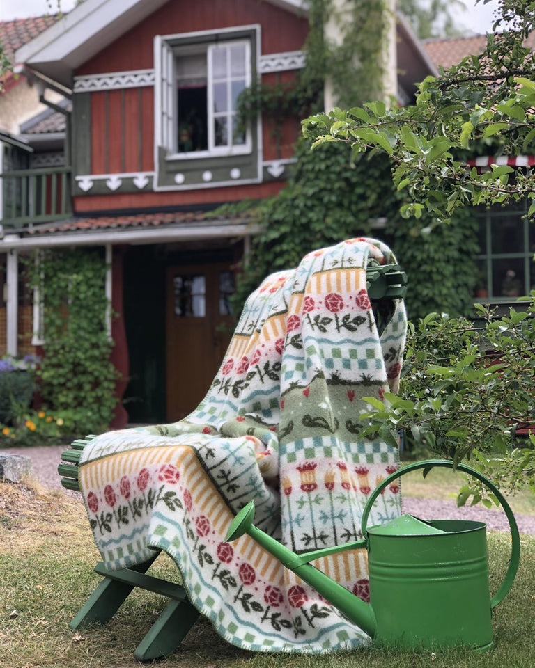 Teppet er produsert i samarbeid med Carl Larssongården i Sundborn, Dalarna.