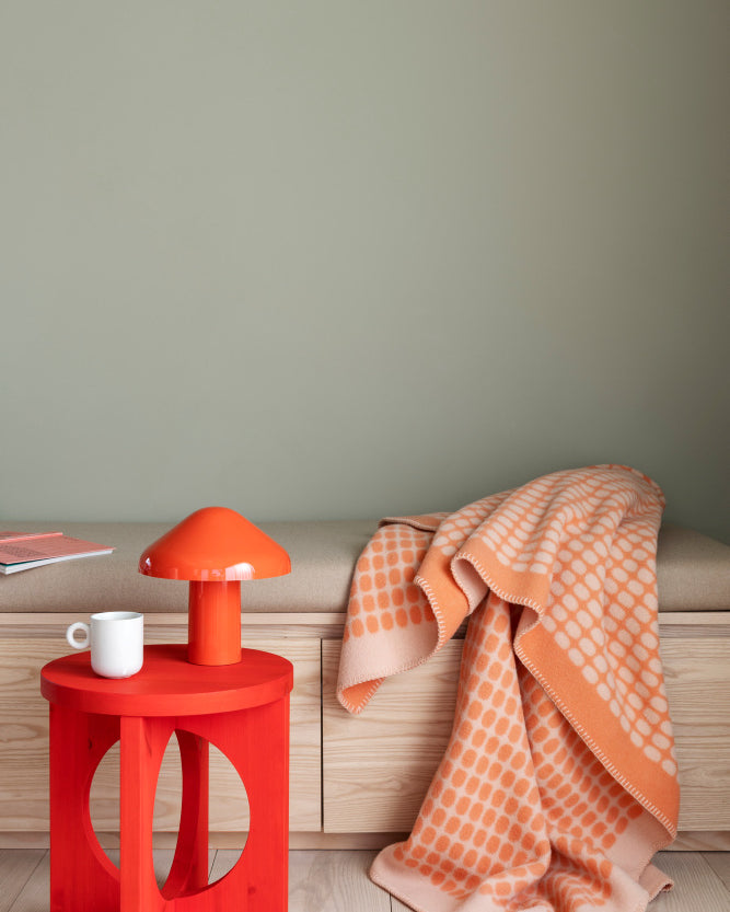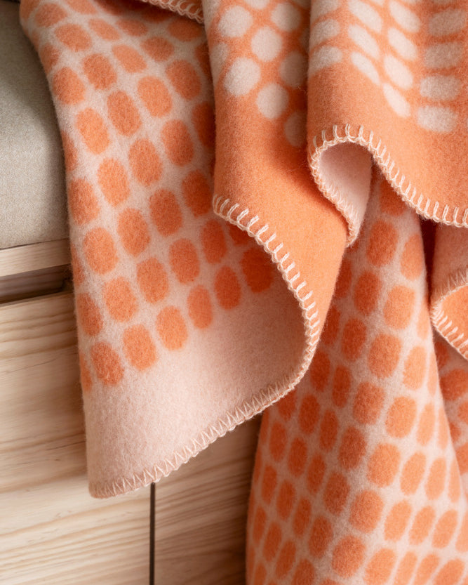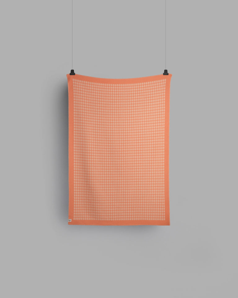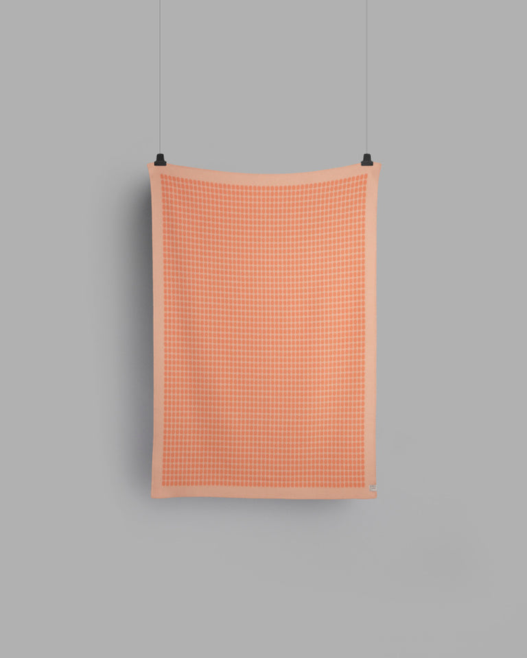 Selv om mønsteret er vevd inn i pleddet, kan det nesten se ut som det er trykket på den myke overflaten og gir assosiasjoner til klassiske teknikker som sjablong, silketrykk, litografi, raster og blokktrykk