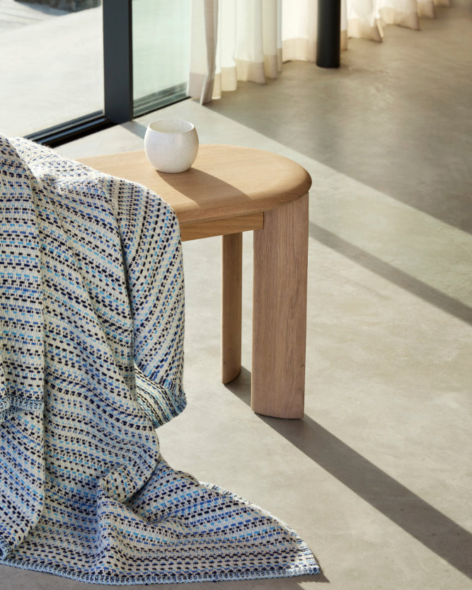 Den hvite renningen fungerer som et lerret som fremhever innslagene av grønt, blått og pasteller.Navnet Fri henspiller på fritid – det å slappe av og slippe tak i krav, kjas og mas.