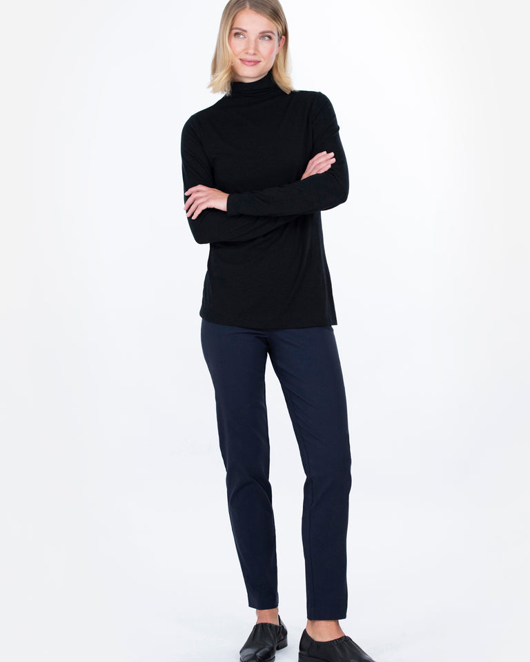 LIISA buksen har en fasong som passer for alle, bare trekk på, ingen glidelås. Bredt dobbelt midjepanel gir ekstra støtte. Innersømlengden på størrelse 36 er 77 cm.