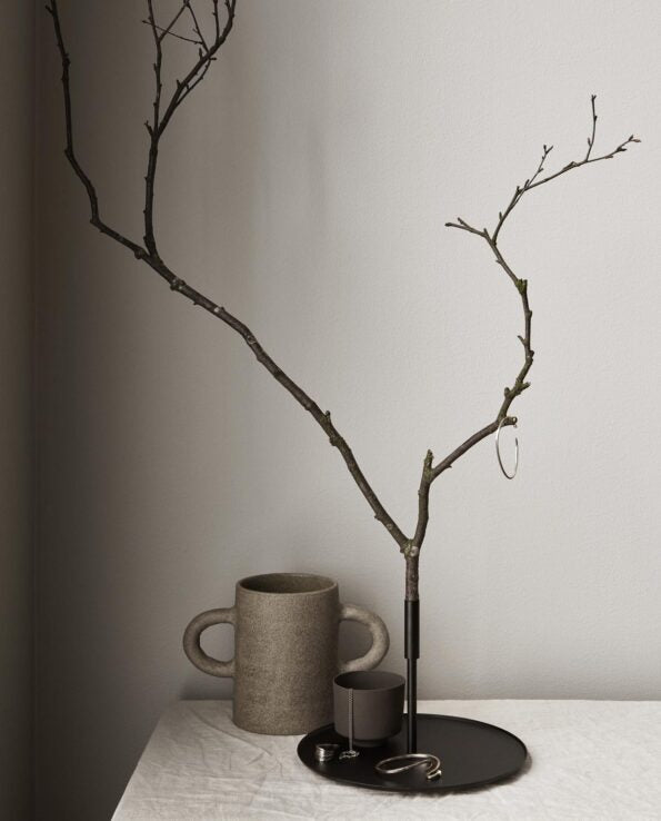 Treet er en lengsel etter å gå ut i naturen for stillhet og et avbrekk fra vår stressende hverdag, sier designer Sara Roxana Norén. Tanken er at du selv kan gå ut og velge en gren som passer akkurat inn hos deg. En medfølgende lysestake kan også erstatte tregreinen, da blir det en vakker lysestake.