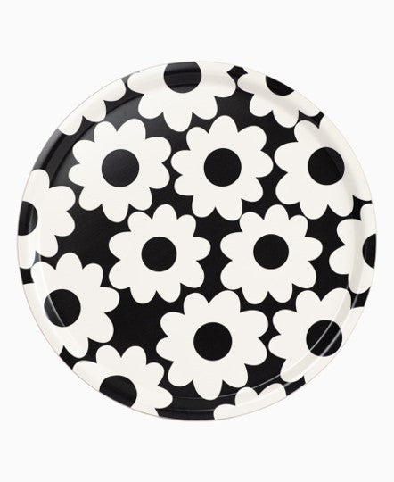 Flora Rundt brett, ø 38cm, svart/ hvit.