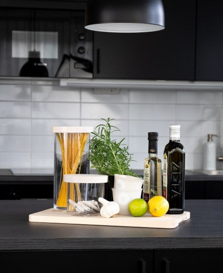 Materialer: Munnblåst glass fra Bergdala Glasbruk og trefatet i hvitbeiset bjørk.
