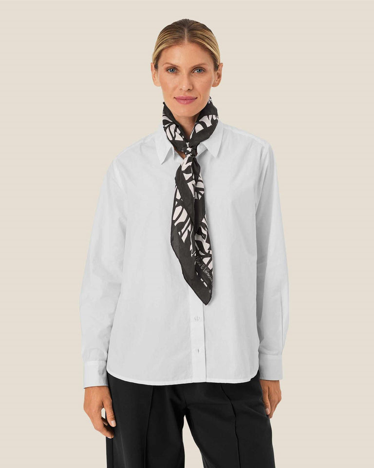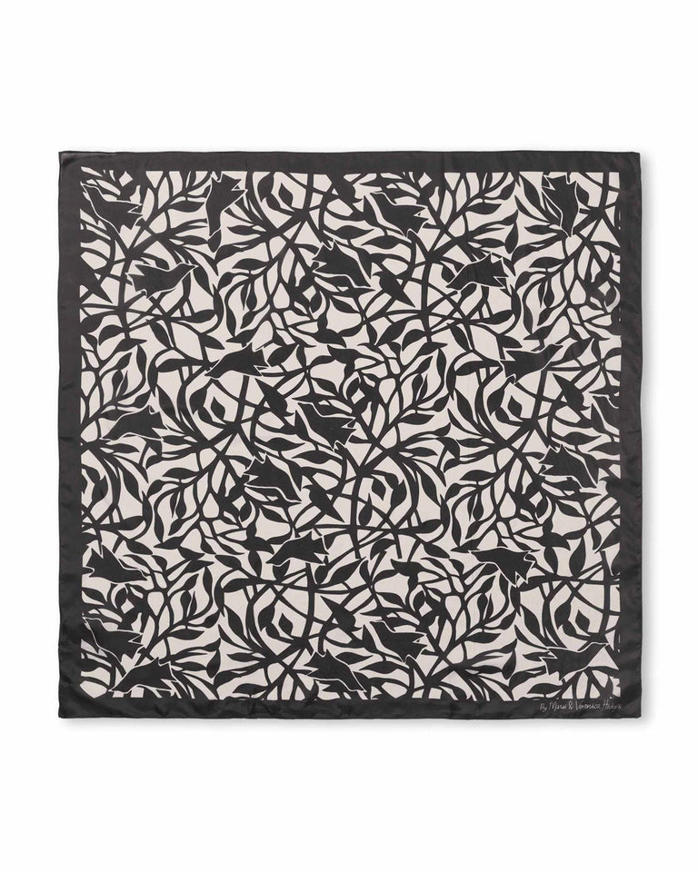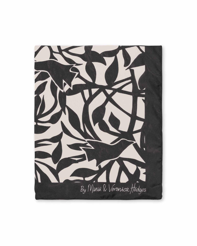 Bær et lite kunstverk rundt halsen med dette luksuriøse silkeskjerfet. Det er designet eksklusivt for Masai av den danske kunstneren Veronica Hodges, og viser naturens skjønnhet gjennom et intrikat mønster av papirklipp. Skjerfet er kvadratisk slik at det er enkelt å knyte rundt halsen, og den myke silken føles lett og behagelig.