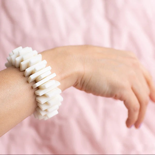 Tagua-nøtten er frøet fra taguapalmen, som vokser i Amazonas regnskog. Frøene samles etter naturlig fall fra palmen, slik at det modne treet ikke får skader. Tagua-palmer er ikke bare veldig fruktbare, men hver enkelt tagua-nøtt er unik i sin størrelse, overflate og form, noe som gjør hvert av tilbehøret unikt i seg selv.