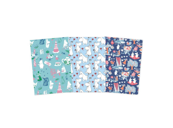 Sett med 3 Mummi notatbokøker motiv av Mummidalen. Notatbøkene har soft cover.