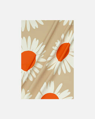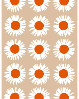 Dette stoffet er laget av resirkulert polyester og er dekorert med Auringonkukka-mønsteret. Stoffet er egnet for utendørs bruk og har en vannavstøtende overflate samt UV-beskyttelse for at fargene skal holde lengre. Den er enkel å tørke av med en fuktig klut.