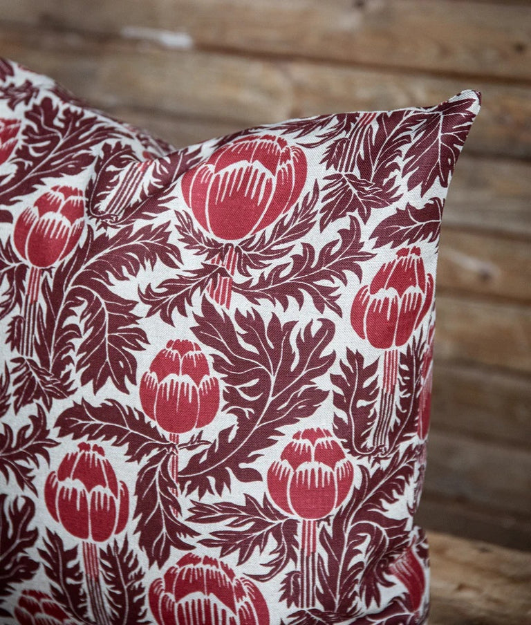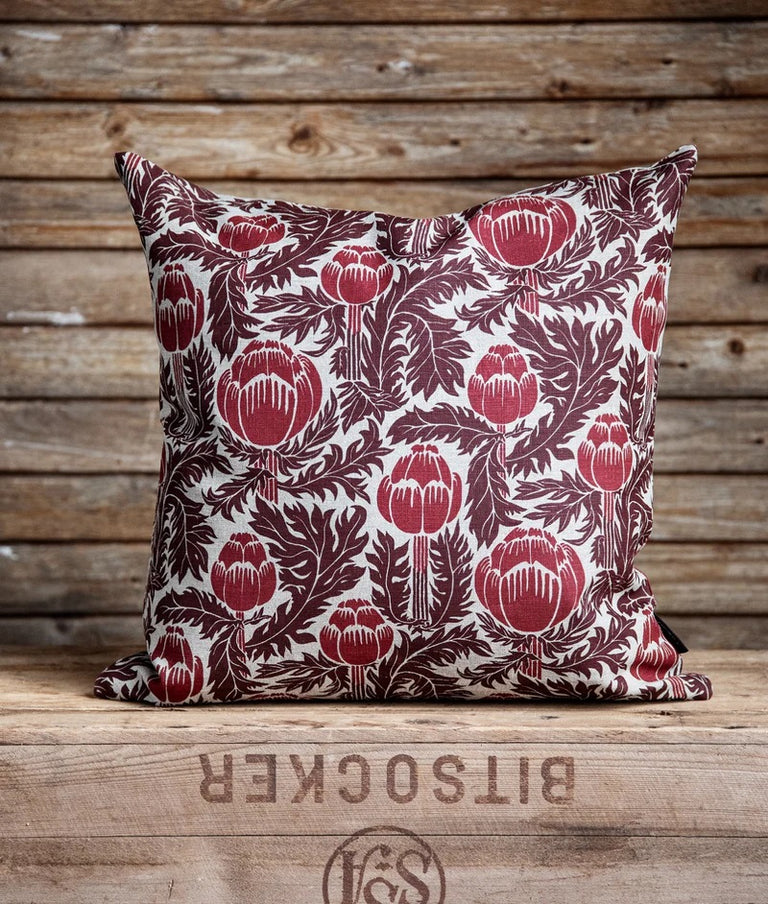 Vakker pute i lin, håndtrykket på Frösö Handtrykk i Jämtland.
