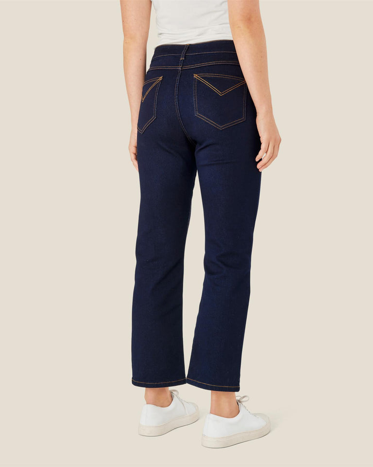 Drømmer du om å finne den perfekte jeansen, trenger du ikke å lete lenger. Her får du et par klassiske jeans med fem lommer og masse stretch, slik at de er like myke som en joggebukse. Buksen har en herlig, croppet lengde med litt sleng som skaper en flott silhuett.