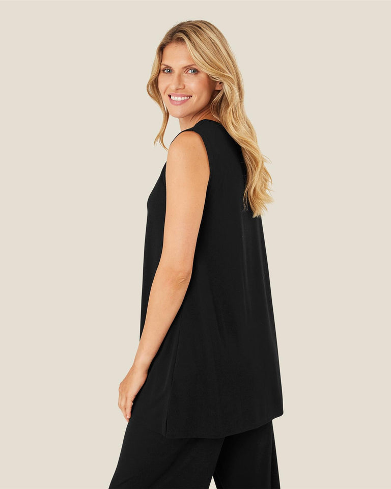 En overdel med myk jerseykvalitet som er herlig å ha på seg. Toppen har en god lengde, slik at den faller flott langs kroppen. De korte splittene i sidene er en fin detalj som bryter opp det ellers enkle snittet. En enkel og myk basistopp som du kan bruke til alt.