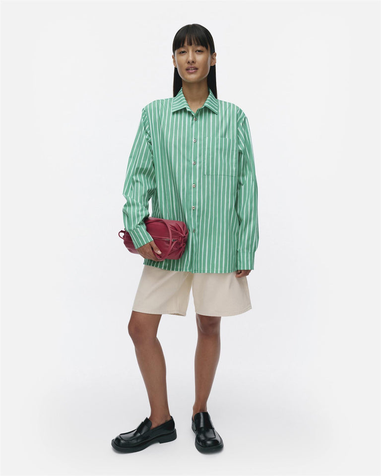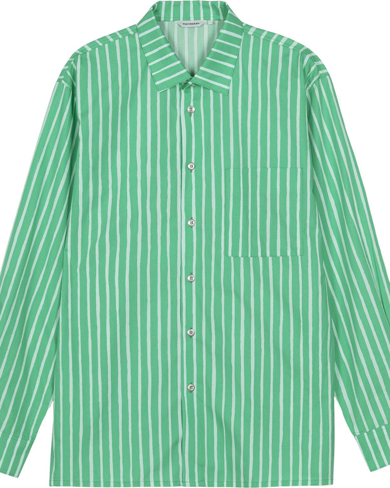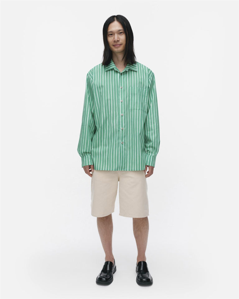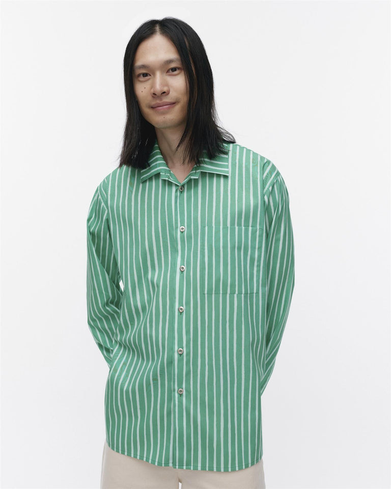 Jokapoika er en unisex-skjorte dekorert med Piccolo-mønsteret. Det er en skjorte med løs og rett passform. Med små side splitt og en påsydd brystlomme og metallknapper.