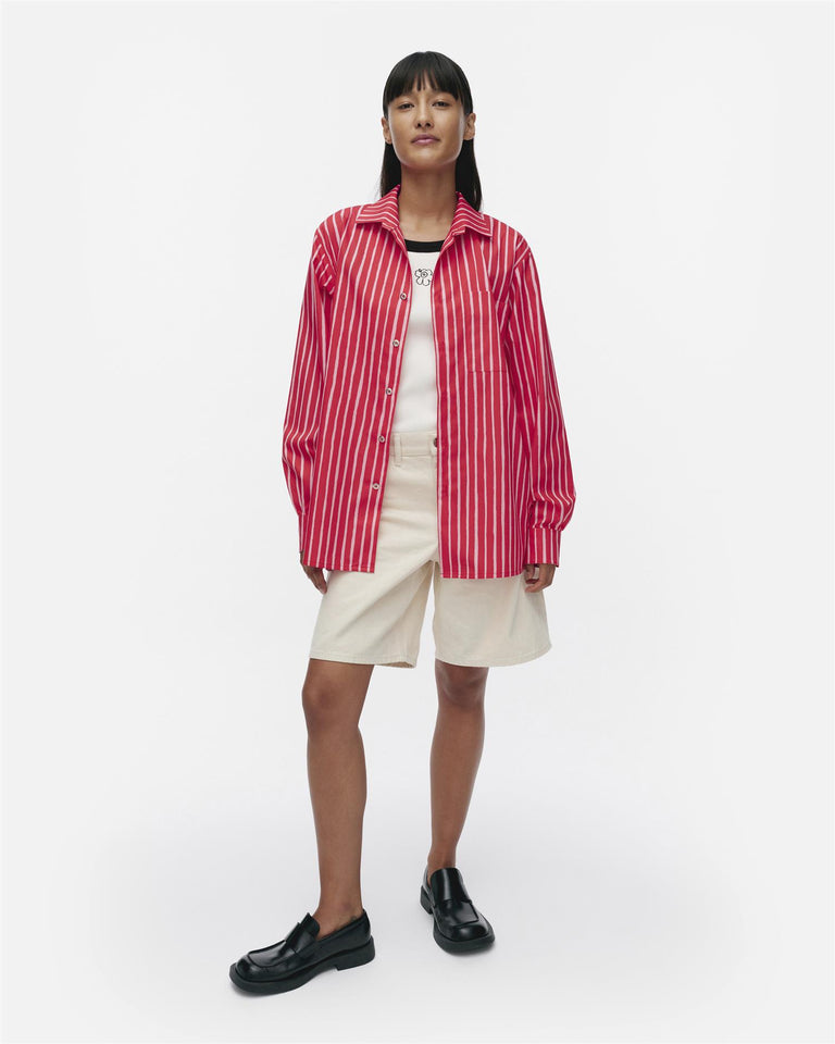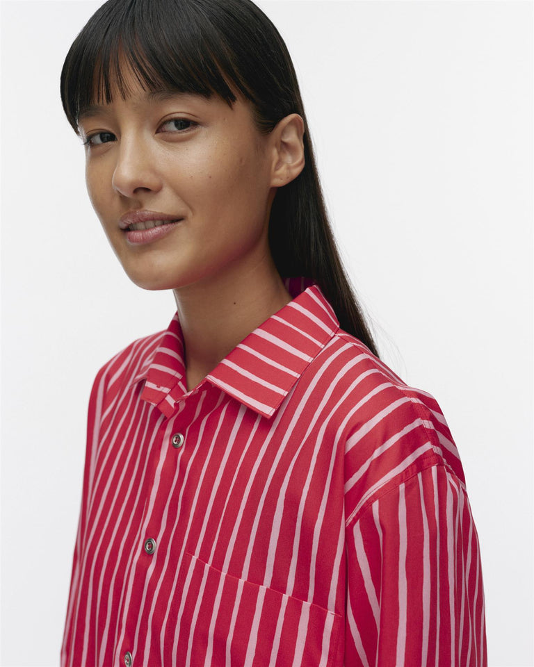 Jokapoika er en unisex-skjorte dekorert med Piccolo-mønsteret. Det er en skjorte med løs og rett passform. Med små side splitt og en påsydd brystlomme og metallknapper.