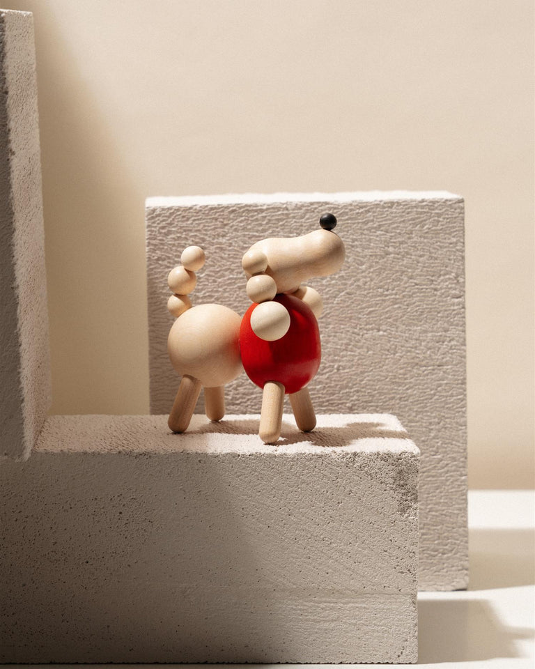 Dyreskulpturen i tre er håndlaget i Finland, og den er et sjarmerende dekor for venner av høykvalitets håndverk og hunder.