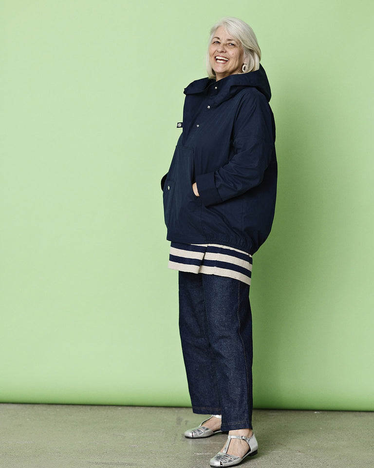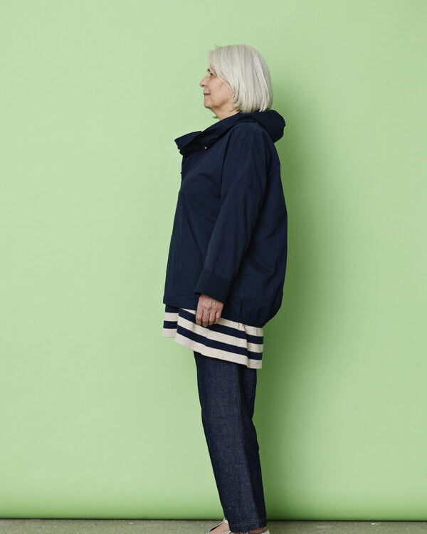 Veldig fin å ha på og med god plass til en ekstra genser, slik at du kan bruke den nesten hele året. Anorakken er vannavstøtende og vindtett. Den har hette og åpningen kan justeres med to trykknapper øverst. En anorakklomme er plassert foran sammen med en liten lomme med trykknapp.