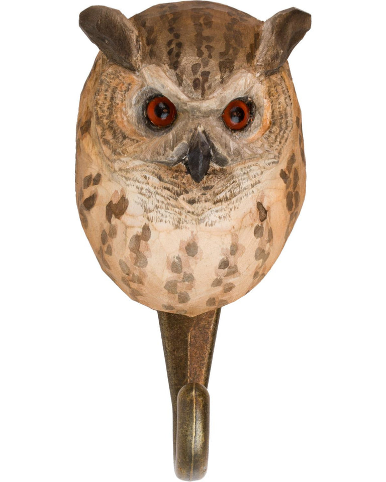 Wildlife Garden Knagg, håndskåret i tre Hubro