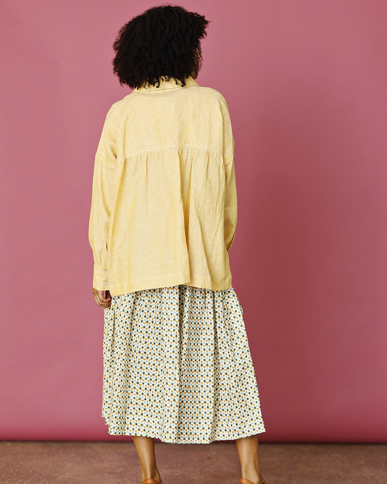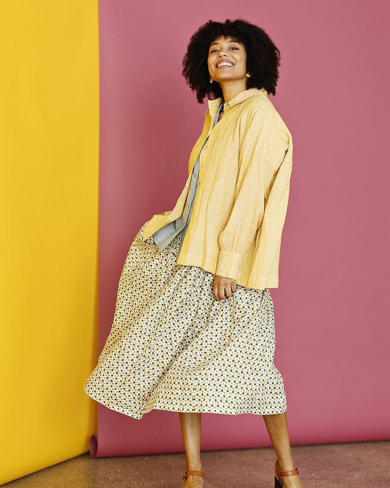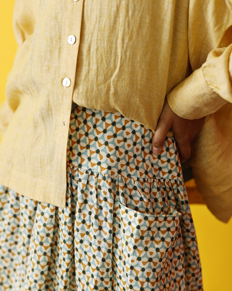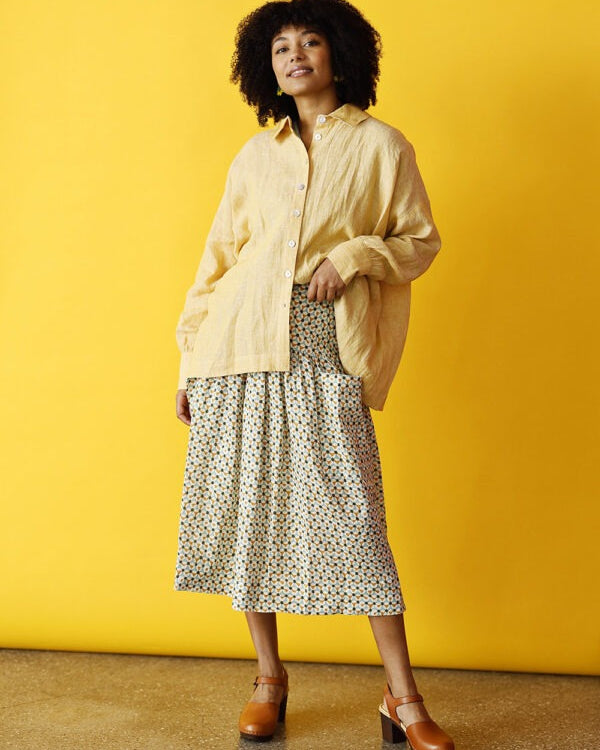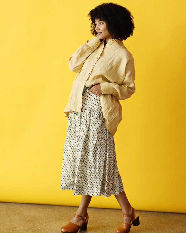 Et ekte sommerskjørt med fin lengde, god passform og ikke minst to store herlige lommer foran. Skjørtets bærestykke gjør det utrolig behagelig å ha på. Skjørtet har glidelås bak.