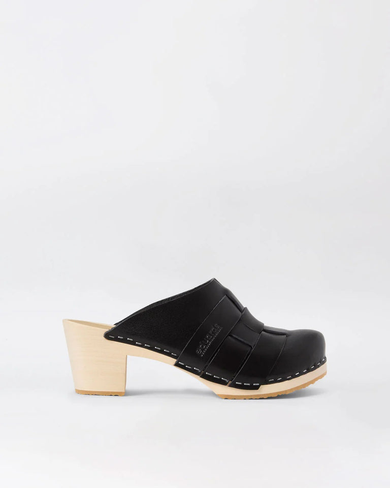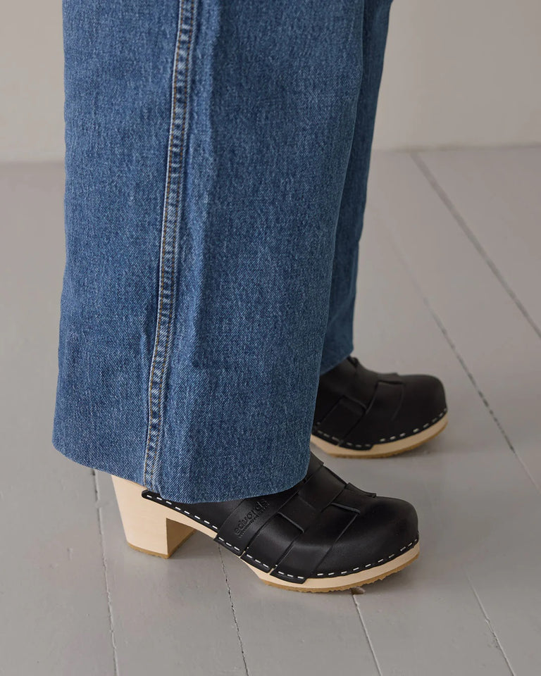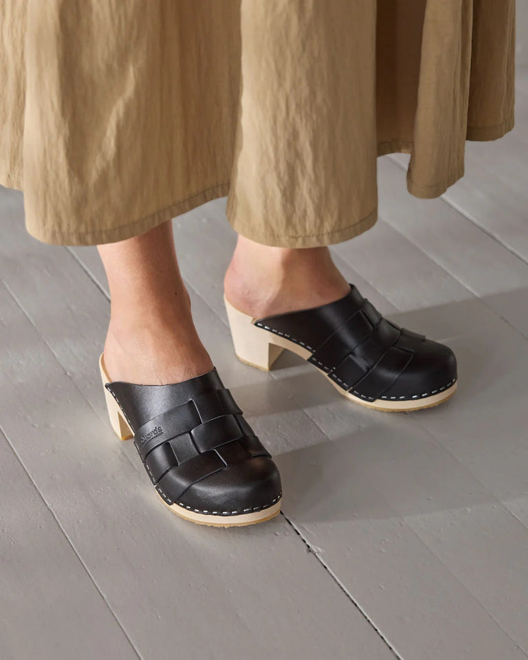 Den høye treskoen er en stilig modell med smalere passform, som gir en tett følelse og forbedret stabilitet. Enkel å ha på og uanstrengt å style – fra avslappede sommerdager til denim og mer oppkledde looks. Den flettede skinnoverdelen, med brede stropper, gir skoen en distinkt karakter som knytter seg tilbake til signaturdesignet til Näver-kolleksjonen.