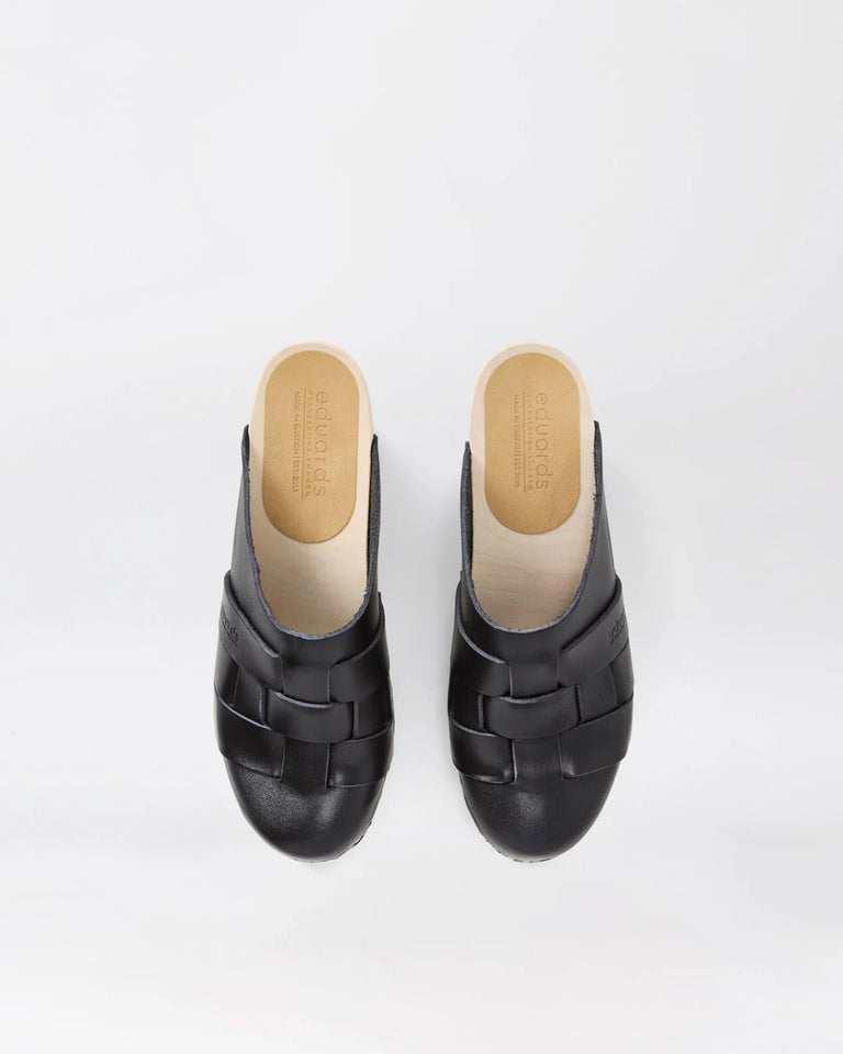 Näver Clog er Eduards moderne tolkning av den klassiske treskoen, der arkitektonisk design møter ekte håndverk. Med sin karakteristiske overdel i flettet skinn, inspirert av deres prisbelønte Näver-kolleksjon, omtolker den Eduards signaturdesign i en ny form.