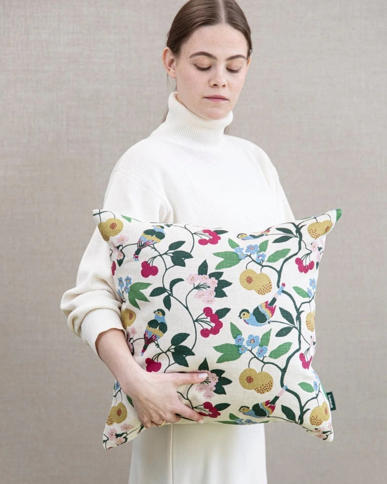 Nydelig putetrekk i lin, håndtrykket hos Frösö Handtryck utenfor Østersund.