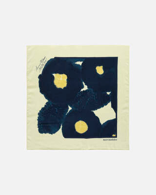 The square-shaped Keskiö scarf features the Kehäkukka pattern.