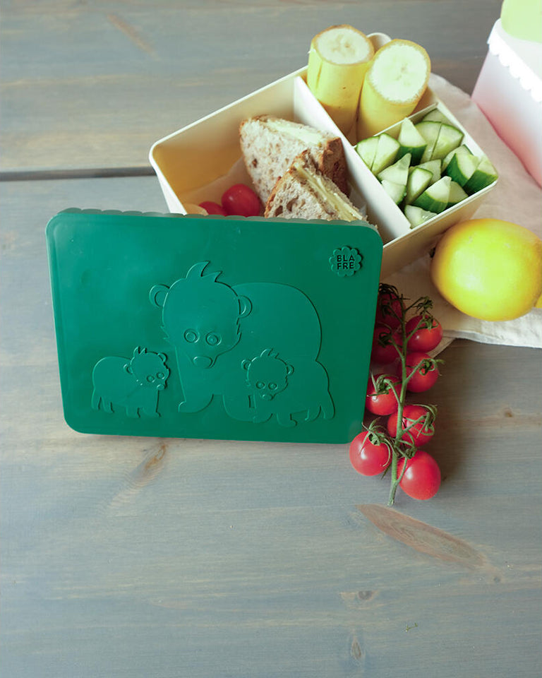 Matboks i Plast med Tre Rom - Bjørn, mørk grønn/ beige