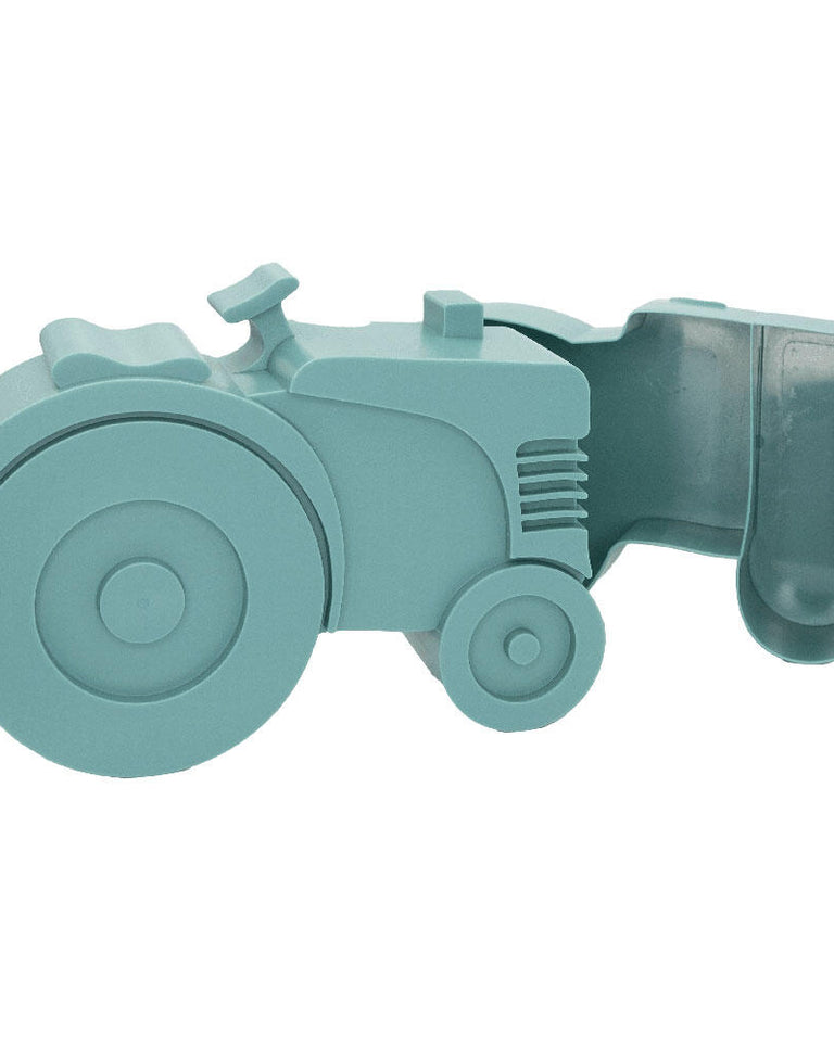 Denne matboksen er designet, utviklet og produsert i Norge - klar for å romme svett brunost eller hjerteformede agurkbiter. Traktoren stortrives dessuten i bilvasken (den under kjøkkenbenken).