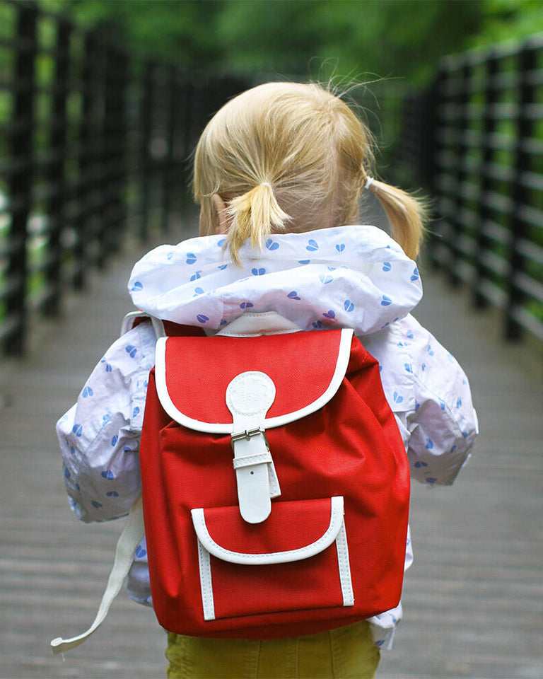 Laget av vannavstøtende polyseter med detaljer i ekte skinn.