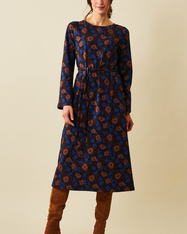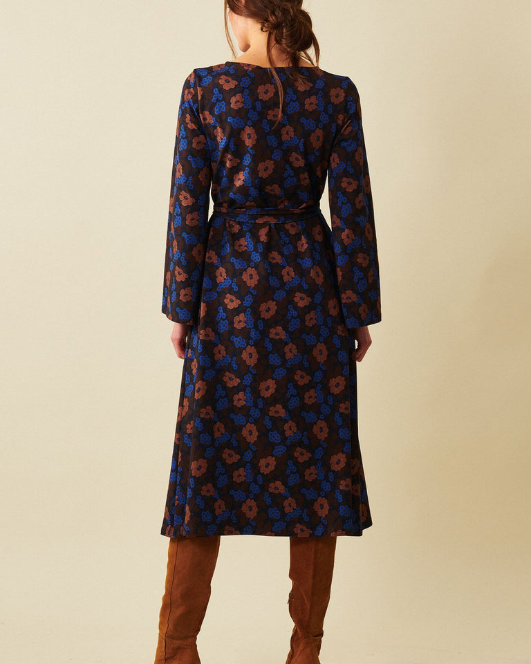 Lenita er en herlig mønstret kjole i en behagelig bomullsblanding. Kjolen har vakre vide ermer og et langt skjørt som slutter ved leggen. En A-formet kjole med et avtakbart belte i midjen. Lenita er perfekt for både hverdagsbruk og mer festlige anledninger!