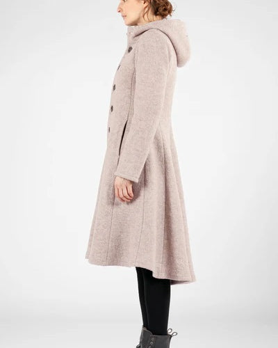 Knelang ullkåpe med hette, tettsittende passform