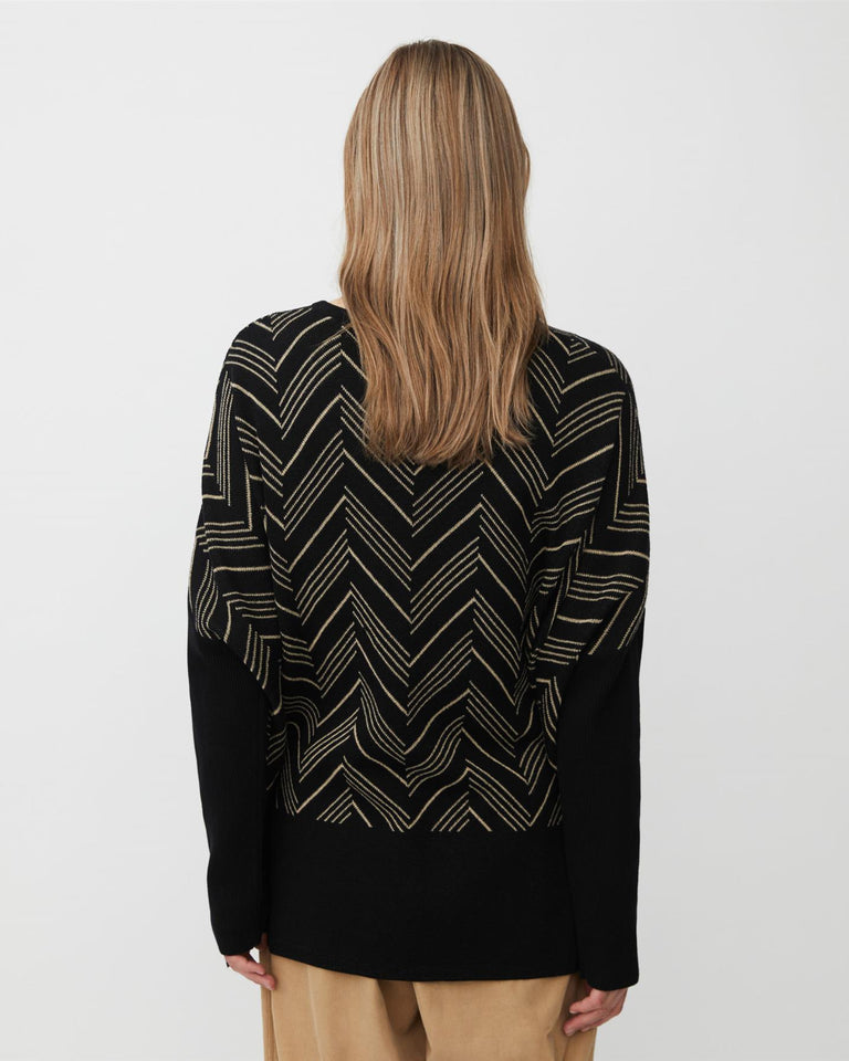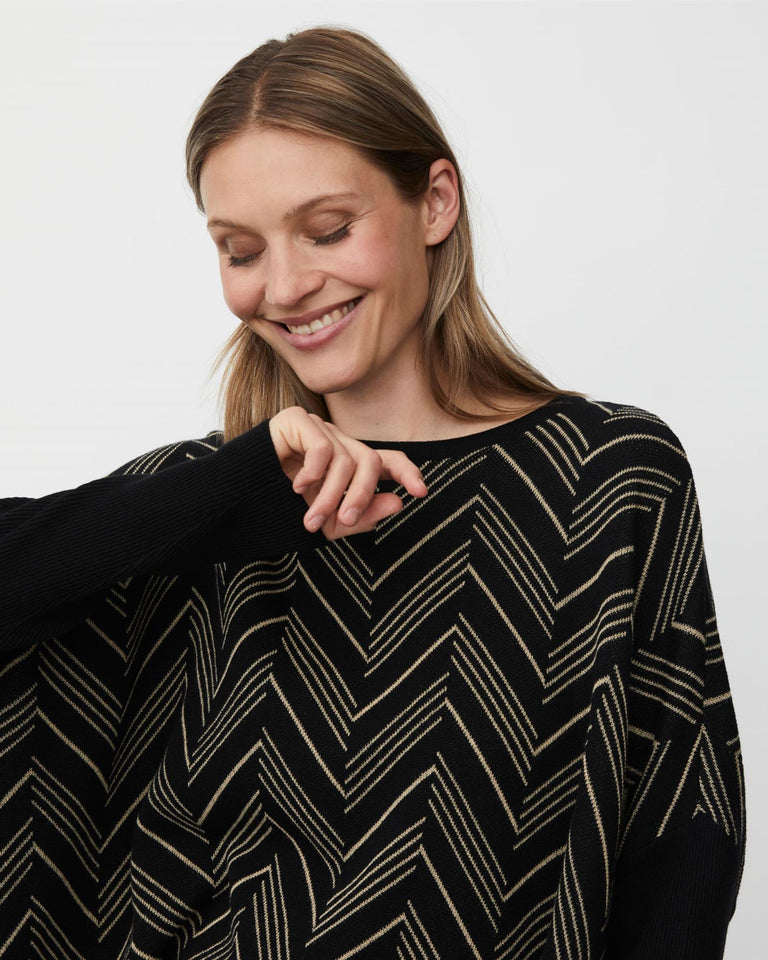 En gyllen genser for deg som elsker vakre mønstre og trykk. Toppen er finstrikket i myk bomull for en løs og lett passform, og har et oversized snitt som gir god bevegelsesfrihet. Den er designet med rund hals og lange, smale ermer som skaper en fin kontrast til den løse overdelen. Style toppen med en smal bukse og en skjorte under for en stilren lag-på-lag-look.