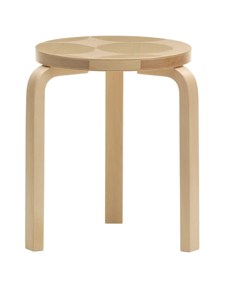 Krakk 60 Kivet forener to ikoniske finske design: Alvar Aaltos berømte «L-ben»-krakk fra 1933 og Marimekkos Kivet-mønster (steiner), skapt av Maija Isola for trykkserien Arkkitehti. Designet fra 1956 var sannsynligvis inspirert av de store, rukantede steinene som ble manuelt fjernet fra eiendommen til Isolas atelier. Marimekkos gledesfylte essens løfter krakkens allsidige design og gir et snev av lekenhet til oppholdsrommene. Kivet-mønsteret presenteres ved hjelp av intarsia på krakkens bjørkefinerplate. Kontrasterende trestrukturer skaper en skimrende effekt, ettersom lys, mønster og treverk samhandler for å bringe mønsteret til live.