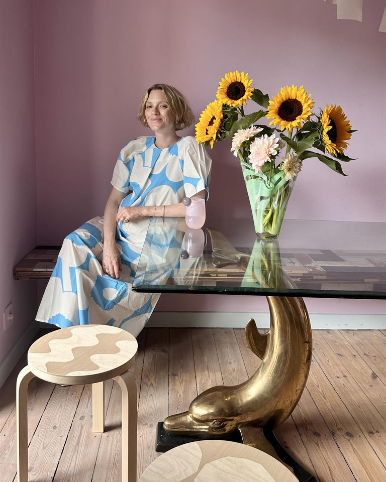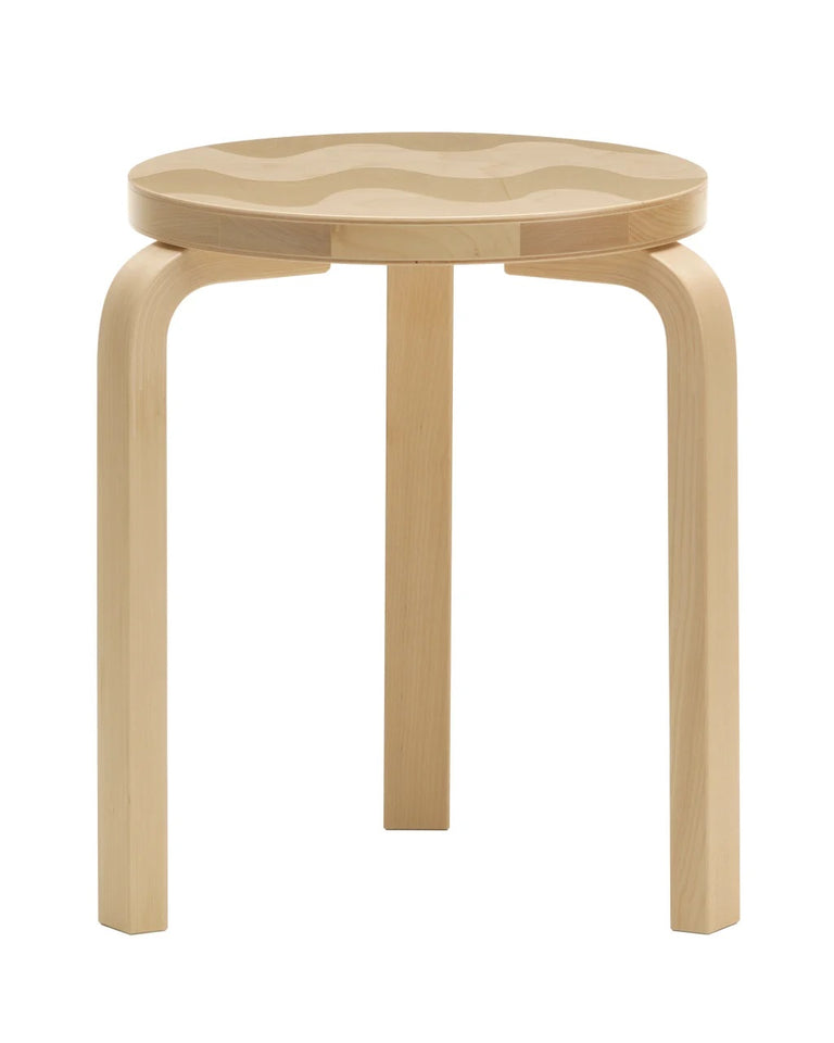 Marimekkos gledesfylte essens løfter den allsidige og funksjonelle Stool 60. De rene linjene til Stool 60 møter Marimekkos gledesfylte Lokki (måke)-mønster, skapt av Maija Isola. Ideen til Lokki-mønsteret kom til Maija Isola da hun så på et vindu med et forheng trukket for. Solen skinte, og de brede foldene i forhenget dannet bølgete skygger på stoffet. Mønsteret er presentert ved hjelp av en innleggsteknikk på krakkens bjørkefinerplate. De kontrasterende trestrukturene skaper en skimrende effekt, som bringes til live gjennom samspillet mellom lys, mønster og tre.