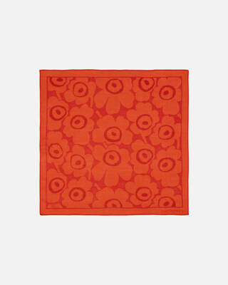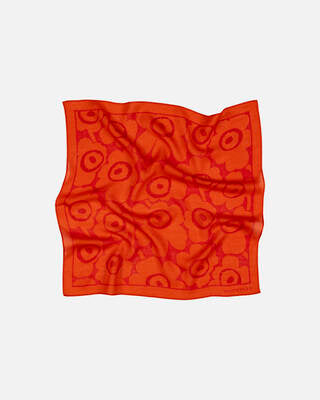 The Kuittaus scarf is made of sheer wool twill. The small scarf features the Unikko pattern and stitched edges.
