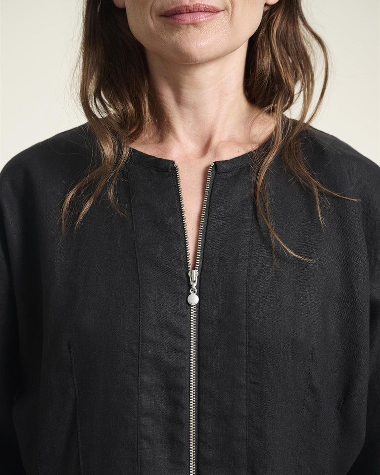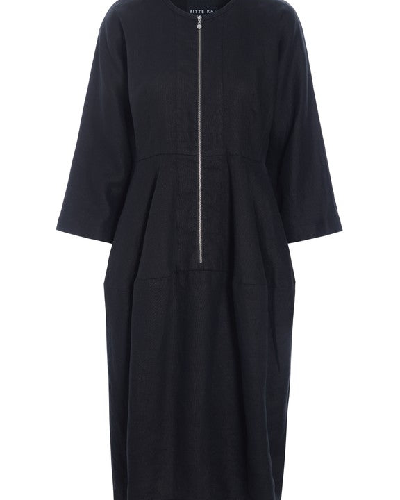 Lazy Linen Kjole med glidelås, Svart