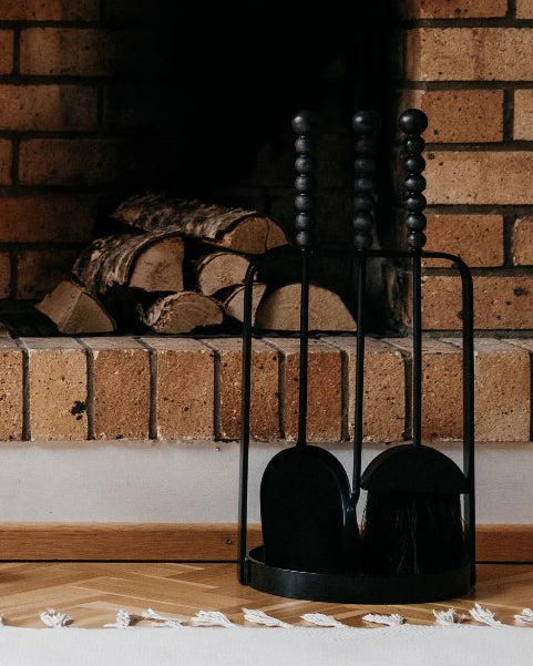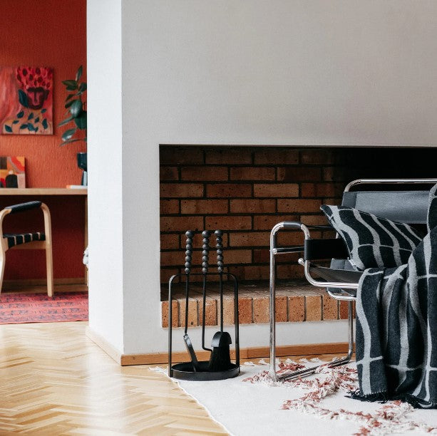 Det stråler en varmende glød fra peisen. Dette Nuppu-peissettet er like vakkert som dekorasjon som det er praktisk. Nuppu er Aarikka på sitt ekte, tre i runde former – hver dag er en feiring.